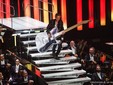 Ha aperto con "Le luci d'America", il nuovo singolo, per poi richiedere insistentemente una discesa dalla mitica scala dell'Ariston sulla quale si è presentato con tanto di chitarra gigante.