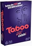 Taboo è il gioco delle parole vietate: scopo del gioco è suggerire una parola ai propri compagni di squadra nel tempo consentito dalla clessidra, ma facendo attenzione a non usare neppure una delle 5 parole taboo, pena l’eliminazione della carta!