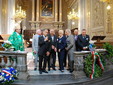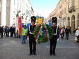 Al termine della Santa Messa, si è formato un corteo per recarsi al monumento nei Giardini Fresia per rendere onore ai Caduti per la Patria, dove accompagnate dalle note del Piave, dell’inno di Mameli e della Marsigliese, sono state deposte una corona di alloro dono degli Insigniti Italiani ed un cuscino di fiori da parte degli Insigniti francesi .