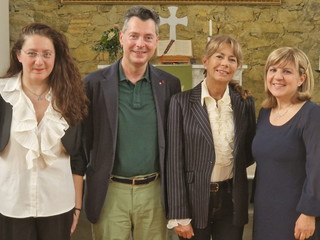L’evento “Parole e Musica di inizio estate” di sabato 8 giugno presso la Chiesa luterana di Sanremo, ha visto il soprano Fiorella Di Luca e la pianista e organista Tiziana Zunino, interpretare le arie di Gaetano Donizetti, Pietro Mascagni e Giacomo Puccini. Per l’occasione, sono intervenute volontaria di AISLA (Associazione Sclerosi Laterale Amiotrofica - sezione di Imperia) Tiziana Taggiasco e Elisabetta Dami, autrice di “Geronimo Stilton” che ha manifestato stima e vicinanza alle iniziative de La Fondazione l’Uomo e il Pellicano.