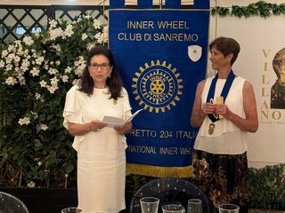 "Particolarmente gradita è stata la presenza della socia Inner Samya Kamoun, past president del club di Tunisi D153 FAMAT che ci aveva già onorato di una sua visita lo scorso 26 febbraio con una sua interessante relazione durante una conviviale" - dice l'Inner Wheel Club di Sanremo - "La serata è stata l’occasione, infine, per la spillatura della nostra nuova socia Madeleine Laik, trasferita per ragioni logistiche dal club di Cannes, accolta con entusiasmo per la sua disponibilità e dolcezza. Una menzione particolare merita l’apposizione sul nostro 'labaro' del riconoscimento distrettuale del 'Premio Editoria' attribuito quest’anno al nostro club grazie all’incessante e pregevole lavoro della nostra socia Marina Remaggi nella sua veste di addetta stampa. L’augurio di buon lavoro per il nuovo anno che ci attende ha concluso questa intensa serata che come ogni anno è sempre speciale".