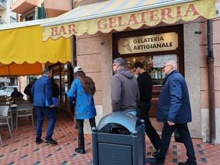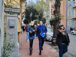 Fabrizio Corona torna a Ventimiglia accompagnato da Nina Morić. Insieme a Rudy Gastaldo, titolare dell'Agenzia Immobiliare Impero, hanno visitato, nel pomeriggio odierno, due attici e un'attività in centro.