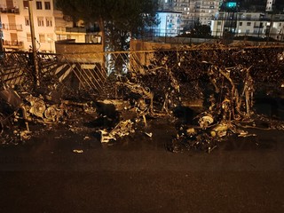 Sanremo: nove scooter ed un'auto distrutte dal fuoco stanotte in strada Borgo Opaco, intervento dei VVF (Foto)