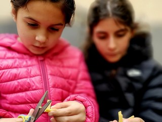 Tre bambini realizzano parmureli e crocette per poter comprare un nuovo microfono al parroco di Seborga.