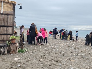 Pulizia della spiaggia a Camporosso. Bambini delle classi seconde, terze e quarte della scuola primaria di Camporosso Capo, questa mattina, armati di guanti, sacchetti e una pinza per raccogliere i rifiuti, forniti da Teknoservice, hanno vissuto l’esperienza concreta della ricerca e individuazione dei rifiuti contribuendo così a ripulire il litorale di Camporosso mare e un tratto dell'Oasi del Nervia dai mozziconi di sigarette, da plastica e carta.