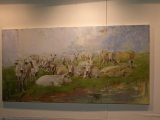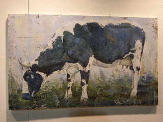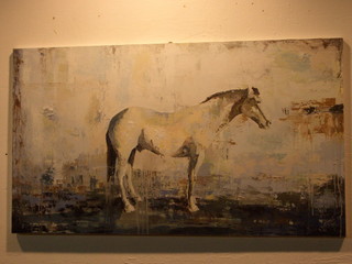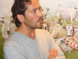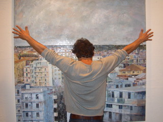 Quali soggetti prediligi?Gli oggetti di uso quotidiano e gli animali e le persone che mi circondano, filtrati attraverso il mio vissuto. Per esempio preferisco delle scarpe da ginnastica alle nature morte tradizionali. La macchina da scrivere è un soggetto ricorrente. Quella esposta a Santa Tecla è resa in maniera drammatica in omaggio ai poeti e scrittori della Beat Generation. Fra gli animali le mucche da macello di Bardineto fotografate durante unestemporanea. I loro movimenti mi facevano pensare a delle pose di modelle, trovarmi in mezzo al pascolo, in una strana atmosfera metafisica, mi trasmetteva un senso di pace. Il quadro del cavallo, quasi unimmagine da libro di veterinaria, è importante per dimensioni e qualità: mi ha aperto delle strade a livello cromatico e di composizione. Non dipingo solo paesaggi agresti, ma anche orizzonti, che sono il pretesto per rappresentare il mare che ho dentro. E città o meglio le facce di una città come la colata grigia di via Galilei a Sanremo, dove protagonista è il cemento, o Bordighera vista dalla spianata del Capo. Per i ritratti, in mostra quello sensuale della mia compagna Valentina, cambio spesso modella perché ricerco la novità. In ogni caso il quadro racconta la mia visione della realtà. Durante la realizzazione mi immergo in una sorta di apnea. Ci sono momenti in cui sento perduta lopera e poi, in una lotta con me stesso, riesco a recuperarla. Comunque nessun quadro è veramente perso, anche dagli incompiuti apprendi qualcosa.