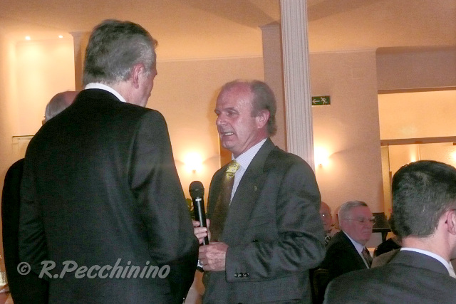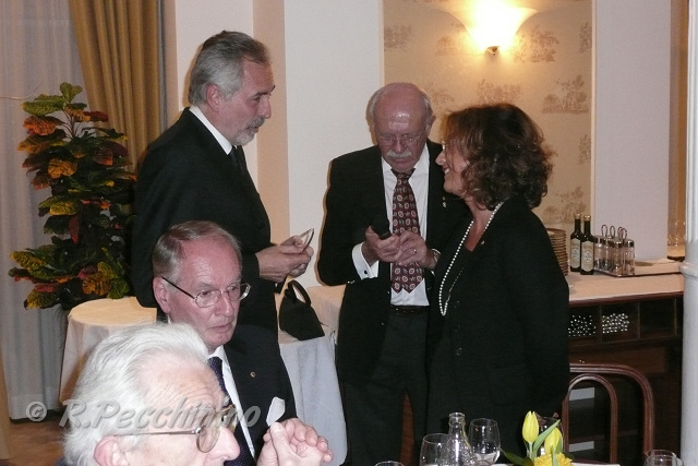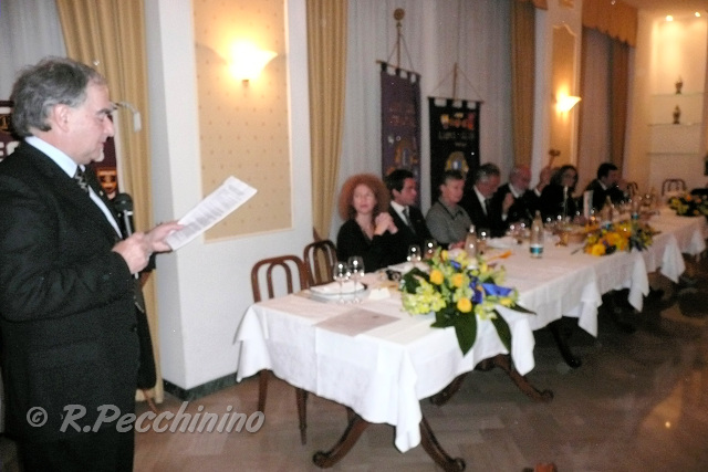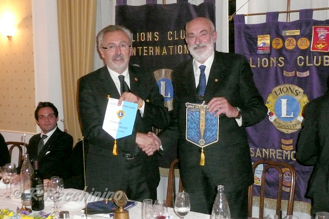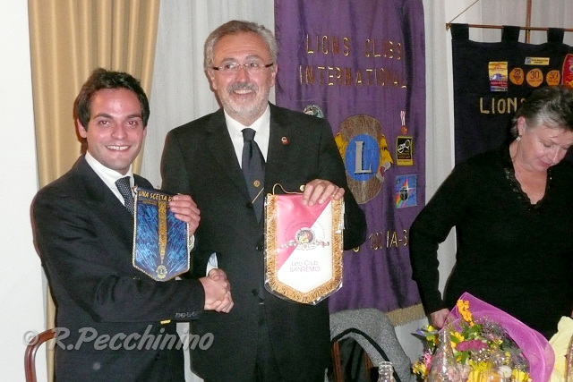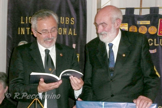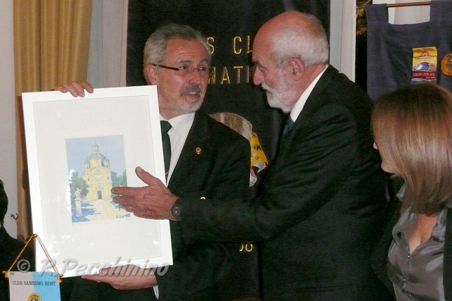 La serata si è conclusa con il rituale scambio dei guidoncini, resa ancor piů ufficiale dalla firma sugli stessi dal Governatore e dal Presidente Orso; un libro con la storia del Club realizzato per il suo cinquantennale e una splendida litografia opera di Renzo Antonelli, con la veduta della Madonna della Costa, sono stati donati dal Presidente Piero Orso al Governatore, a nome di tutti soci del Lions Club Sanremo Host.