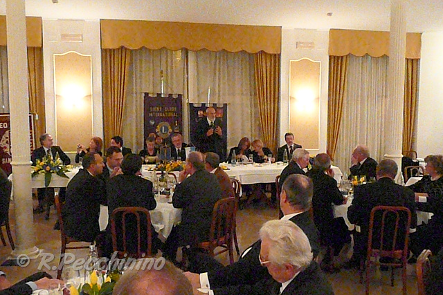 La serata è stata condotta con ritualitŕ e professionalitŕ dal cerimoniere distrettuale Felice Rota; dopo gli inni ufficiali, il presidente Piero Orso con un tocco di campana ha dato inizio ai lavori, dando un saluto di benvenuto al Governatore e a tutte le autoritŕ presenti. Il Governatore, prima di iniziare la sua relazione, ha voluto conoscere personalmente tutti i soci presenti, spiegando che "il Lionismo è nato non solo per realizzare dei service benefici, ma anche con l'impegno di fare Amicizia e conoscenza tra tutti i soci, affinché gli scopi prefissati, siano realizzati con vero spirito damore e di servizio, senza interesse".