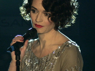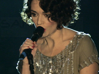 La serata omaggio ai 60 anni del festival continua con Carmen Consoli che canta 'Mandami una cartolina', la canzone del suo ultimo album dedicata al padre scomparso da poco. Sollecitata dalla Crerici, accenna a cappella 'Amore di plastica'. Poi quella che definisce la sua canzone preferita di Sanremo: 'Grazie dei fiori'. Applausi a scena aperta anche in sala stampa.
