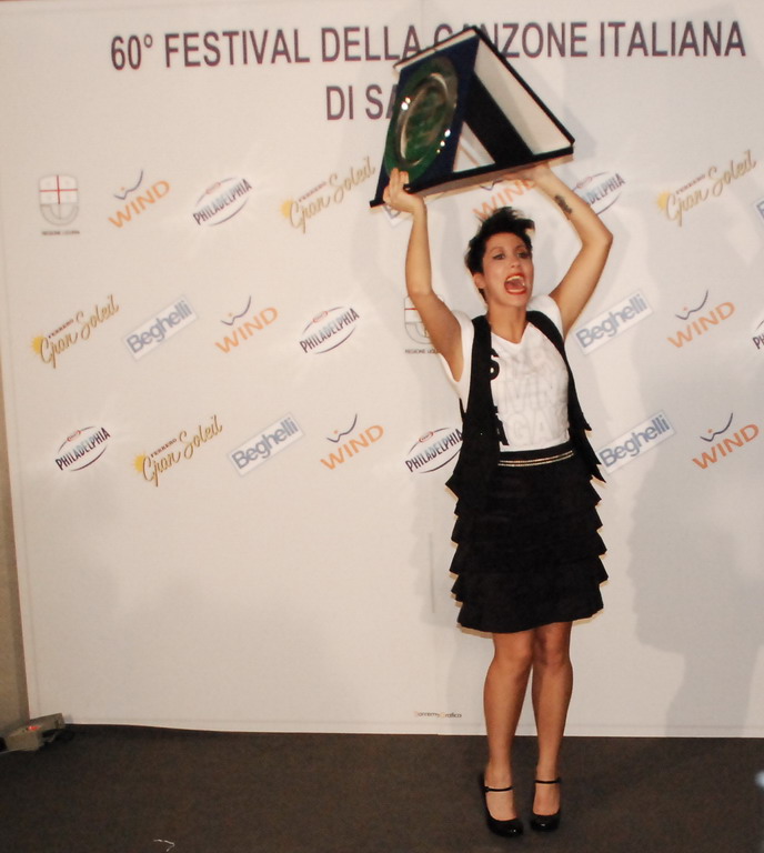 Grazie, accidenti! La stampa mi ha sostenuta da quando ero piccola cosě. Sono molto felice, anche se puň sembrare retorico e diplomatico. Sanremo non devessere fine a se stesso e vincere per vincere sarebbe riduttivo. E comunque non ci ho sperato nemmeno un minuto. Il mio brano deve fare da apripista ai progetti a cui ho lavorato con le persone che credono in me. Vorrei dedicare a loro il successo, in particolare alla mia produttrice Caterina Caselli. La protesta dellorchestra mi ha resa mostruosamente orgogliosa, nonostante limbarazzo da morire.