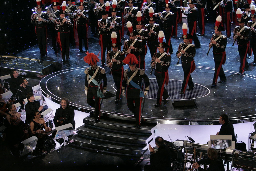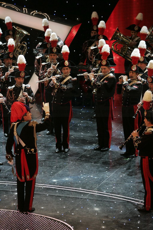 E dopo le foto fuori dall'Ariston ecco quelle all'interno del teatro della Banda dei Carabinieri.