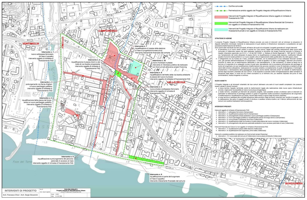 Contiamo di avere una progettazione definita, che parte subito dicono i due Sindaci - entro sei mesi. Siamo davvero soddisfatti perché si puň veramente cambiare la faccia della zona, creando anche posti di lavoro in un luogo che ora, si puň definire morto. Si tratta di lavori allarredo urbano ed allurbanistica, che andranno ad incentivare gli investimenti dei privati. La zona compresa quella che va da via Primo Maggio di Vallecrosia alloasi faunistica di Camporosso ed il progetto è lunico in tutta la regione, che vede la collaborazione tra due comuni. Verranno realizzati servizi pubblici per un successivo intervento dei privati a scopo turistico-ricettivo. E previsto un albergo a 100 metri dal mare, con almeno 90 camere, ma anche altre strutture per oltre 400 posti letto. La superficie di intervento è di 200mila metri quadri, con lo stesso orientamento dei due piani regolatori.