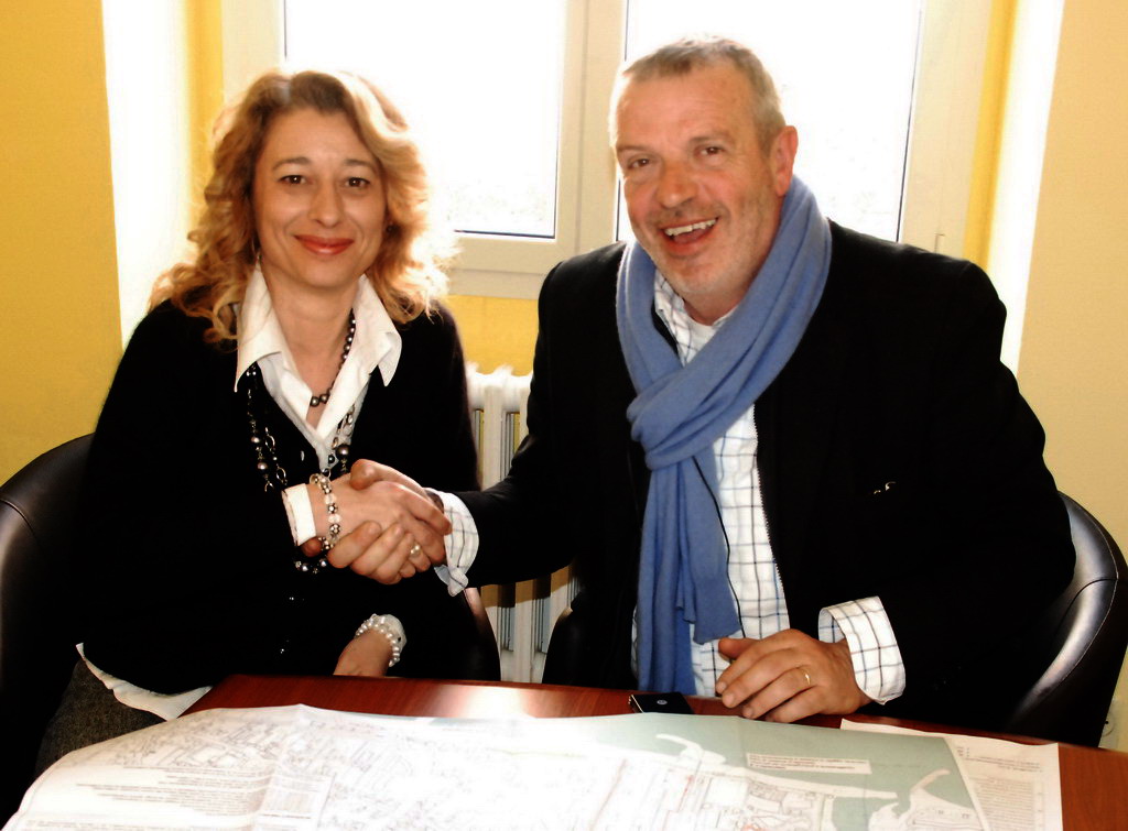 (Nella gallery la stretta di mano tra i due sindaci, le piantine del progetto ed i progettisti)