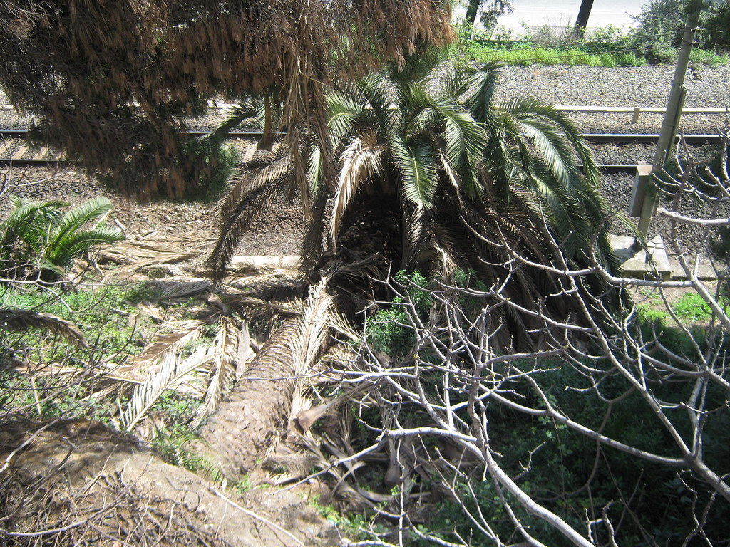 La palma si trova lungo il terrapieno sovrastante i binari della ferrovia allaltezza del Palazzo delle Poste a Imperia. Ravvisato il pericolo sussistente ha chiesto Indulgenza allassessore allarredo urbano e verde pubblico Emilio Broccoletti - che si aggraverebbe in caso di nuovi rovesci temporaleschi e conseguenti smottamenti di terreno, quali misure sono state intraprese dallamministrazione comunale in proposito anche nellallertare altri enti competenti?"