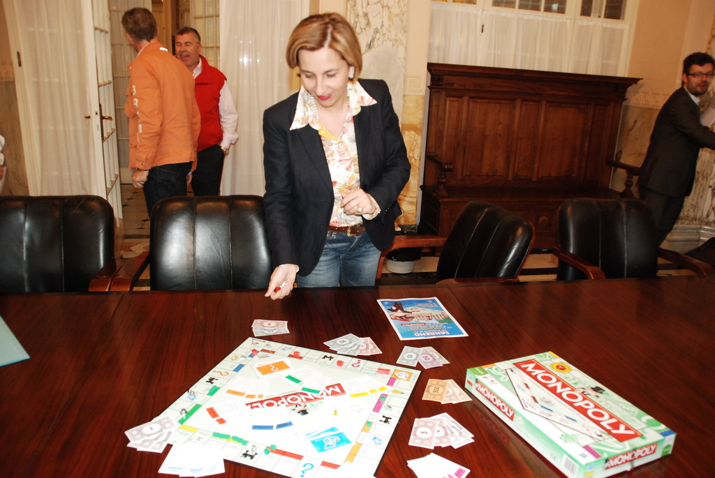 LAssessore alla Pubblica Istruzione Claudia Lolli, con la collaborazione del Casinň Municipale di Sanremo, di Hasbro e dei Centri Integrati di Via, ha organizzato e seguito tutte le iniziative che si susseguiranno nei giorni 28, 29 e 30 maggio per promuovere il gioco in cittŕ e 'spingere' la candidatura di Sanremo attraverso la votazione via internet Dal 15 maggio, infatti, tutti gli italiani sono stati chiamati al voto sul sito www.monopolyitalia.it per decretare le 22 localitŕ italiane che avranno il loro posto donore sul tabellone del Monopoly Italia, unedizione speciale che verrŕ realizzata il prossimo anno, in coincidenza con i 150 anni dellUnitŕ. Da Milano ad Agrigento, da Cortina DAmpezzo a Taormina passando per Roma e LAquila, sono oltre 140 le cittŕ in lizza. E Sanremo, la regina dellestremo ponente ligure, raccoglie la sfida e si 'monopolyzza' per una tre giorni ricchissima di eventi, tutti dedicati al gioco da tavolo per antonomasia.