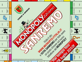 Sanremo è la prima città italiana a mobilitarsi per conquistare un posto sul tabellone nella nuova edizione di Monopoly Italia, la versione totalmente made in Italy del gioco più famoso del mondo, dove, per la prima volta, al posto di 'Vicolo Corto' e 'Parco della Vittoria' compariranno i nomi delle città dello Stivale. E per battere la concorrenza, la Città dei Fiori, con lo slogan 'Monopolizziamo Sanremo', lancia un vero e proprio Festival del Monopoli, un’appassionante sfida che coinvolgerà tutta la città, tra tornei dedicati ai ragazzi delle scuole con un tabellone gigante per la partita vivente in piazza San Siro, giochi nei locali pubblici e una serata di Gala nella casa da gioco più famosa d’Italia, alla presenza Sindaco Maurizio Zoccarato e del Presidente del Casinò Donato Di Ponziano.