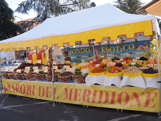 I prodotti alimentari, chiaramente sono in prevalenza rispetto agli altri, qui, infatti, si potranno trovare torte tipiche dalla Toscana, porchetta, tortelli di zucca, salumi dallEmilia Romagna, la Sardegna presenta tutte le sue tipicitŕ, liquirizia biologica della Calabria, Formaggi e salumi tipici, funghi freschi e conservati il burro delle vallate provengono dal vicino Piemonte, il Trentino Alto Adige è presente con tutti i suoi prodotti tra cui spicca lo speck, la Sicilia presenta tutti i dolci al marzapane, i cannoli, gli arancini, i sughi e le conserve specialmente di pesce, Piemonte e Lombardia presentano i vini del Monferrato e quelli dellOltrepň, non poteva certo mancare la Liguria con olio e suoi derivati.