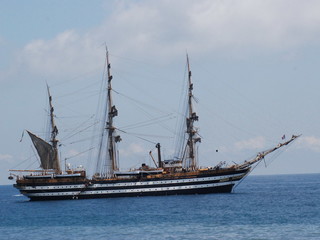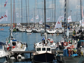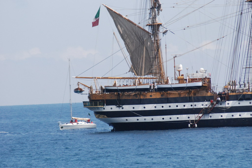 (Nelle foto le imbarcazioni arrivate in porto e la Vespucci in rada)