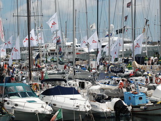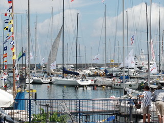 Mentre si susseguono gli arrivi delle barche che hanno partecipato alla 58a 'Giraglia', il porto di Sanremo è vestito a festa. Le imbarcazioni stanno arrivando alla spicciolata ed animano l'approdo matuziano. Tra piazzale Vesco e la zona del Conad c'è la zona di accoglienza dei partecipanti, che stanno assiepando i locali del centro dove, purtroppo, questa mattina è stato incendiato il 'Big Ben'.