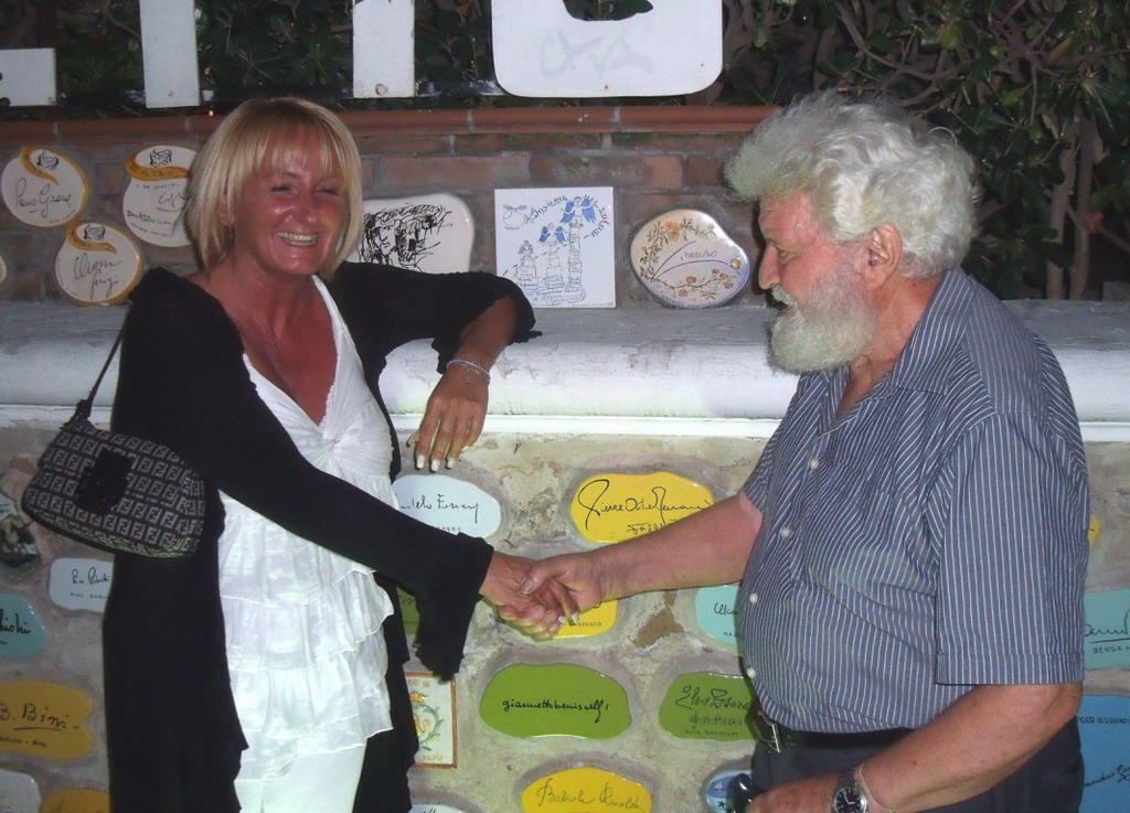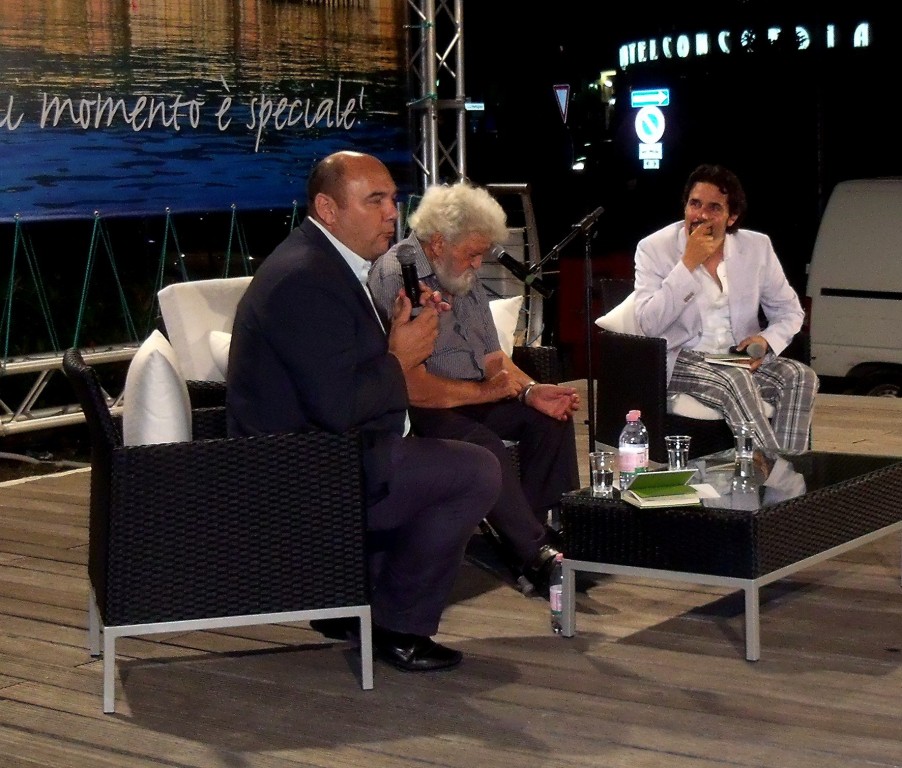 Un pubblico numeroso ha partecipato all'incontro con Libereso Guglielmi, che si è svolto in piazza Partigiani ad Alassio dopo la posa della piastrella con la sua firma, sul famoso muretto della città.