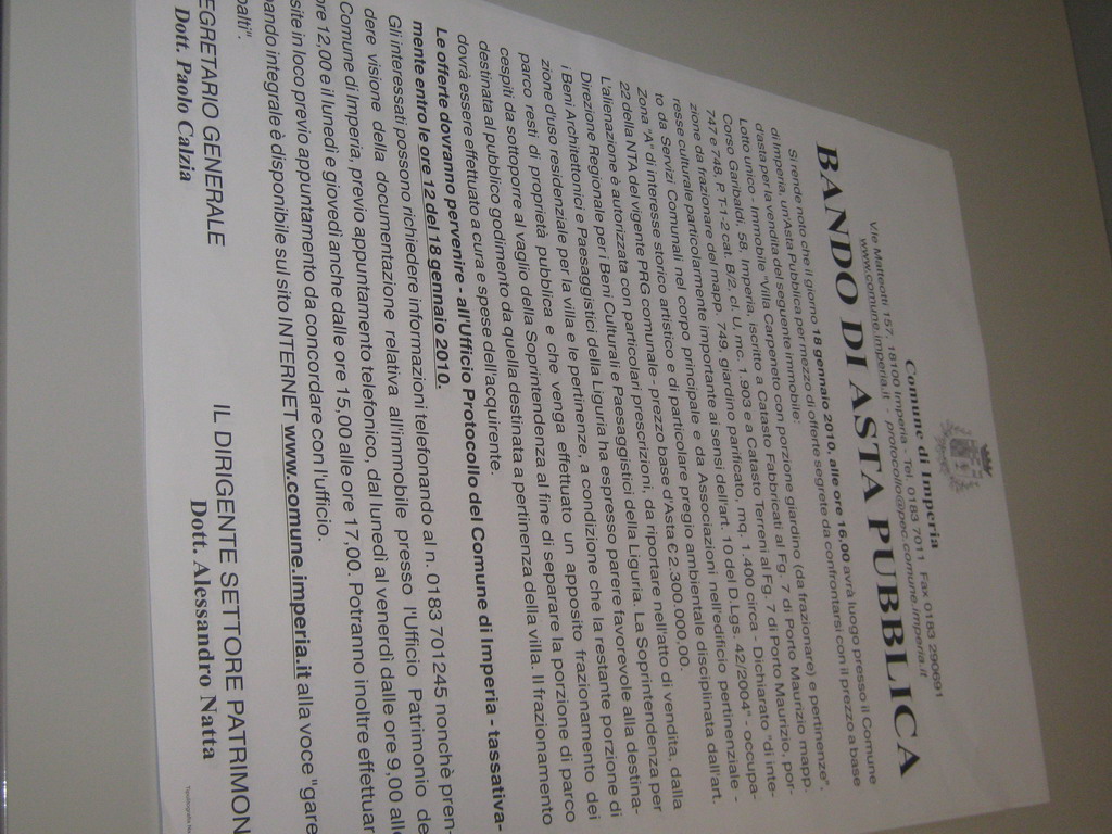 Imperia: ancora sconosciuto l'autore della burla dell'acquisto di Villa Carpeneto