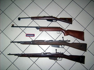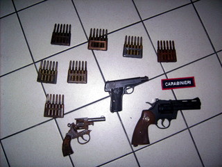 Sono state ritrovate armi detenute illegalmente, tra cui: 3 pistole (un revolver, una semiautomatica ed una a gas), due moschetti, tre canne da fucile di diversa lunghezza, due canne di pistole, 350 cartucce varie, bossoli, ogive.