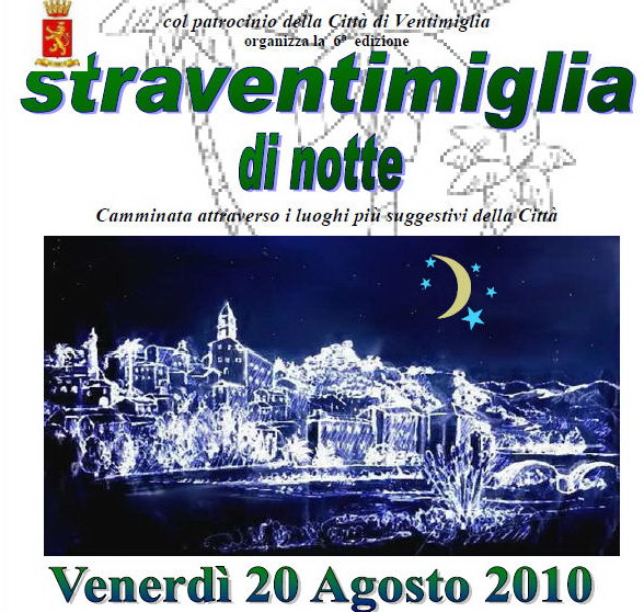 Si è svolta venerdì scorso la 6ª edizione della 'Straventimiglia di Notte', organizzata dal comitato Straventimiglia formato da: Comitato Pro-Centro Storico, Circolo Culturale Porta Marina, Circolo Endas Nervia, Comitato Di Quartiere Giardini Mare, con il patrocinio della Città di Ventimiglia.