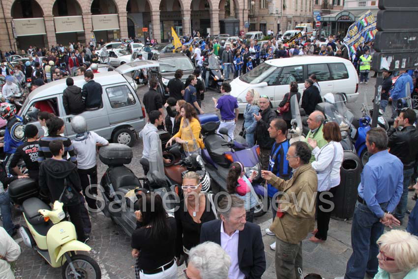 Centinaia di tifosi dell'Inter, quest'oggi, per le vie del centro a Sanremo. I supporters, giunti in zona per la finalissima di Supercoppa Europea, in programma questa sera a Montecarlo, hanno approfittato dell'occasione per fare una capatina presso la città dei fiori. In attesa della partita tra F.C. Inter e Ateltico Madrid, rispettivamente vincitrici della Champions League e dell'Europa League, i tifosi neroazzurri si sono spinti nella città matuziana per fare compere, visitare l'Ariston e il Casinò.