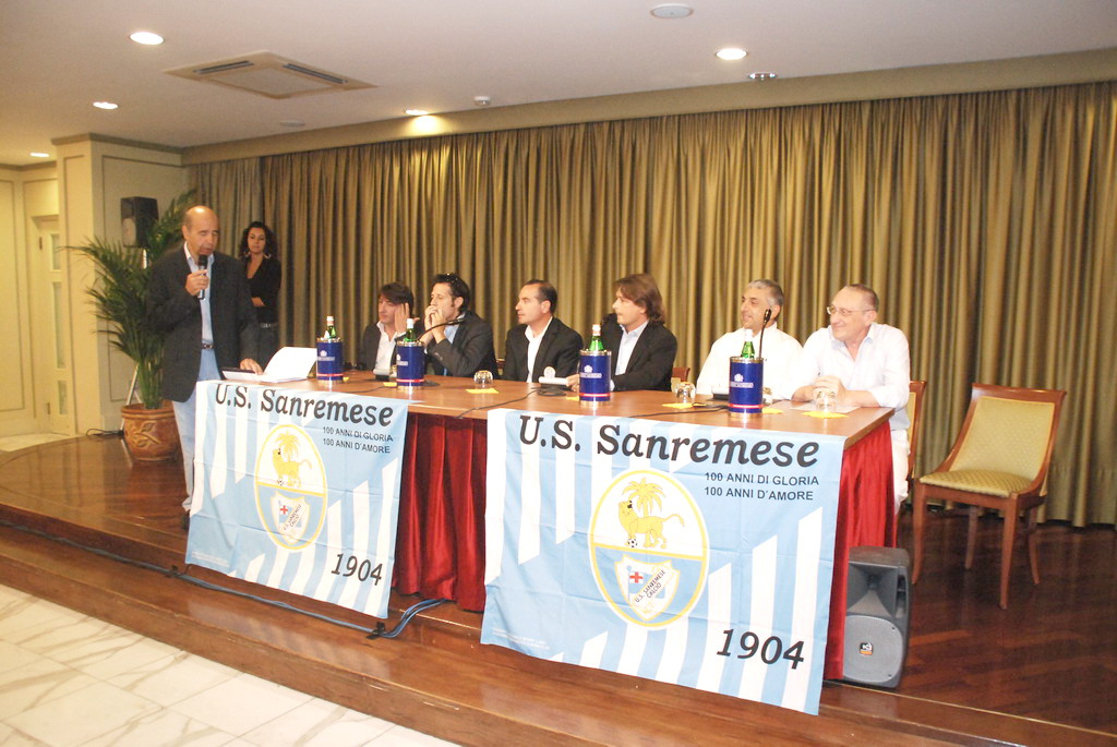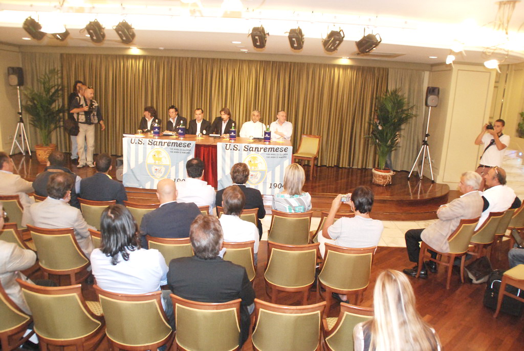 Ad aprire ufficialmente la conferenza il Presidente Marco Del Gratta (l'audio dell'intervista cliccando QUI): “Un anno fa eravamo qui a parlare di campionato di Eccellenza, molti non credevano a questo successo ed erano dubbiosi. Oggi si stanno ricredendo, e le stesse persone di allora, lanciano messaggi insidiosi sui media. Noi lo facciamo con passione e questa è la dimostrazione che con il lavoro e il cuore, si possono ottenere dei piccoli successi. E’ una passione coltivata da anni da mio padre, che ci mette tutto se stesso”. Infine un proclamo, che infiammerà d’entusiasmo sicuramente tutta la città ed in particolare i tifosi, lanciato da Del Gratta, che si è sbilanciato affermando che si punta ad arrivare ai playoff. “Abbiamo dovuto allestire una squadra professionistica in poco tempo, praticamente in una ventina di giorni. Ho voluto rischiare, e sono stato premiato. Prometto una salvezza tranquilla, ma sono convinto che con un paio di innesti delle ultime ora, possiamo provare a spingerci oltre, puntando ad arrivare ai playoff. La struttura sportiva e l’impianto – ha proseguito il Presidente –, grazie alla concessione comunale è ottimale. L’immagine dei nostri ragazzi deve fare da volano per Sanremo in giro per l’Italia. Sono sicuro che gli sforzi economici, dell’amministrazione e del casinò, verranno ripagati”, ha concluso. Il presidente Del Gratta ha poi ringraziato la sua famiglia: "E’ molto importante. Per questo ringrazio mia moglie ed i miei figli che, in questo momento in cui sono lontano da loro perchè preso dalla società, sono comprensivi con me. Stanno dimostrando tutto l'amore che hanno nei miei confronti, nonostante io non riesca a stare con loro come facevo prima".