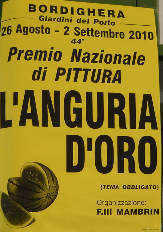 Con la cerimonia di premiazione si concluderà stasera alle 21, la 44a edizione del concorso nazionale di pittura 'Anguria d'oro', organizzato nei giardini del porto di Bordighera dalla Famiglia Mambrin.