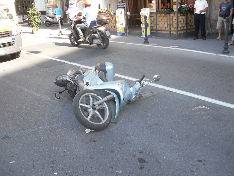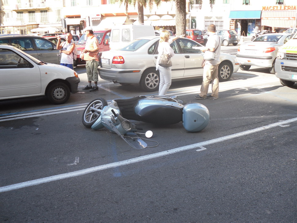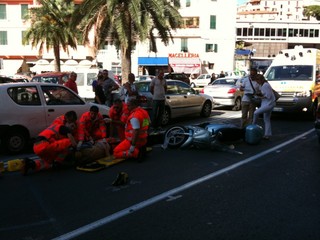 Sanremo: donna in scooter accecata dal sole investe un pedone in Piazza Eroi