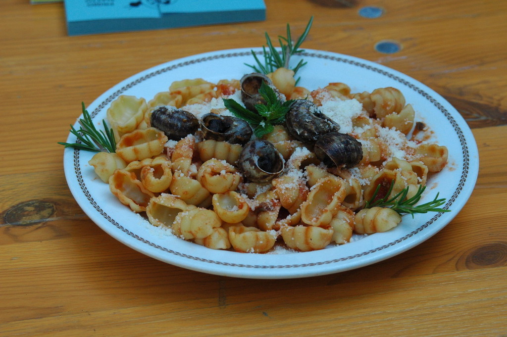 L’aspetto culinario ha voluto tener conto del gusto delle persone. Così, attorno alla lumaca che comunque rappresenta il piatto clou e di cui ne cucineremo nel padellone ben 4 quintali, , sarà proposta una pasta, ovviamente 'chiocciole', che in alternativa al sugo di lumaca, potrà essere gustata anche semplicemente pomodoro e basilico. Anche per il secondo piatto, accanto al 'padellone delle lumache' un’alternativa pertinente al territorio e poco proposta; 'il cinghiale', oltre alle classiche rostelle, salsiccia e patatine fritte. Qui l’allegria sarà assicurata dai 'Brutti e Boi'.