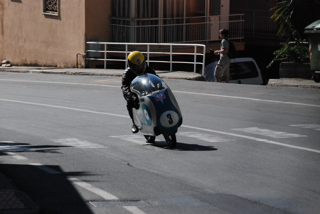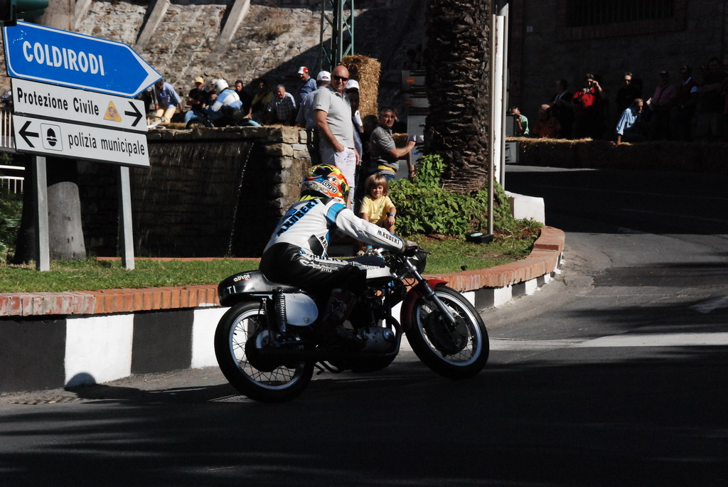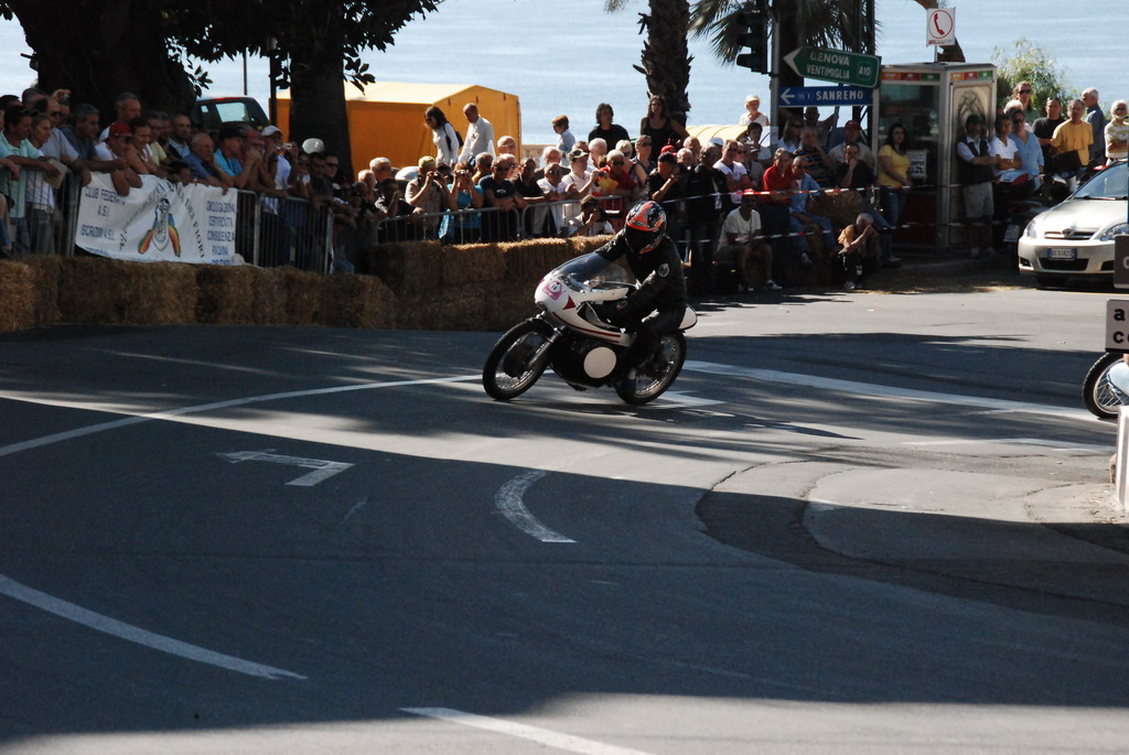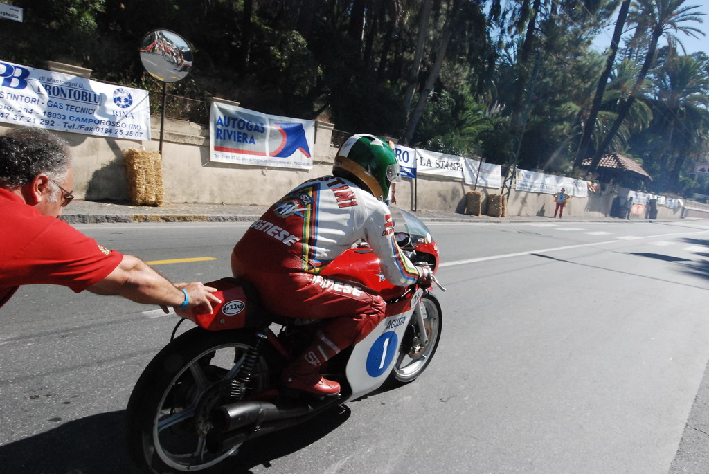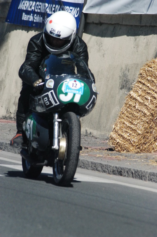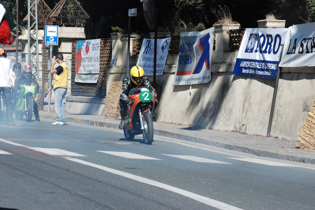 Una grande folla ha assistito questa mattina alla prima sessione delle 8 batterie della seconda edizione della Rievocazione storica del Circuito Motociclistico di Ospedaletti.