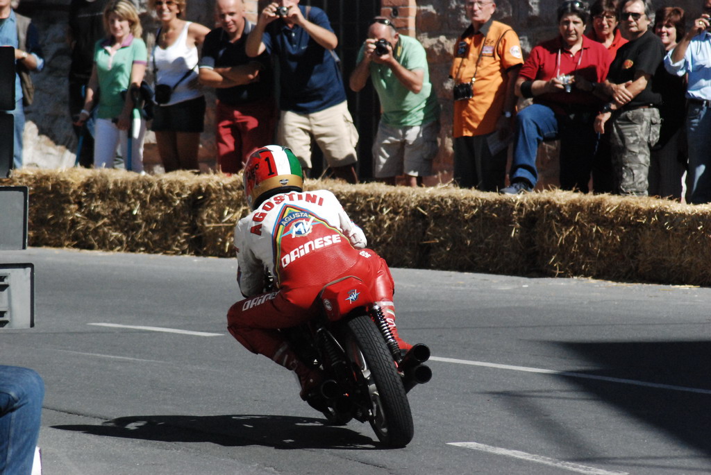 Tra i partecipanti anche il mitico Giacomo Agostini che ha riscosso notevole interesse da parte del pubblico. Alle 14 partirà la seconda gara in 8 batterie e infine è prevista la Parata Finale dei Campioni intorno alle 18.30.