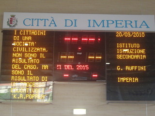 Si è svolta stamattina presso il Palazzetto dello Sport di Imperia l’inaugurazione del “G. Ruffini” del capoluogo. L’Istituto ha salutato le nuove leve alla presenza di numerose autorità scolastiche, civili, militari e religiose, tra i quali il sindaco Paolo Strescino e il presidente della Provincia Luigi Sappa La manifestazione è stata allietata dall’esibizione del gruppo musicale dell’istituto, dal gruppo di danza Hip Hop e da giochi ed attività coordinate dagli studenti della scuola coinvolti nel progetto Peer Education, attuato in collaborazione con l’Asl1 imperiese. L’iniziativa è giunta al secondo anno e si rivolge in particolare agli alunni delle classi prime, per agevolare il loro ingresso nel nuovo ordine di scuola e favorirne il momento dell’accoglienza grazie alla collaborazione degli studenti delle classi successive. Alla manifestazione hanno partecipato anche i genitori degli studenti, chiamati ad una partecipazione attiva, per favorire un percorso di studi sereno e proficuo, in cui scuola e famiglia svolgano un ruolo sinergico e collaborativo.