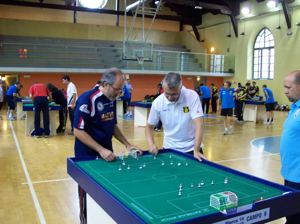 La domenica buona prestazione di Manuel Mastrantuono che, all’esordio nella categoria Under 19, conquista un più che onorevole terzo posto, dietro a giocatori di già provata esperienza. Una vittoria e tre sconfitte con una serie di incontri che hanno denotato la sua crescita in questo sport. Nell’individuale ‘Open’, Gianfranco Calonico conferma nuovamente di aver raggiunto l’olimpo del Calcio Tavolo italiano, sfiorando la finale, solo ai ‘supplementari’ contro Michelangelo Mazzilli (Torino 4-5). Molti i giocatori che hanno partecipato alla categoria ‘Veteran’. I miglior risultato è stato di Gianfranco Mastrantuono che, dopo aver vinto il proprio girone e passato i quarti di finale, esce ad un passo dall’ultimo atto, solo ai ‘supplementari contro Pisca (Biella, 0-1). Passa il primo turno anche Mimmo Zaffino, nella lottra ‘fratricida’ con Bacchin, ma si ferma al ‘Barrage’ contro l’ex di turno, Jacopo Feletti (Ferrara, 1-3). Prestazione meno brillante per Stefano Bacchin, che esce al primo turno ma riesce a rifarsi nel torneo di ‘Consolazione’, andandolo a vincere agevolmente.