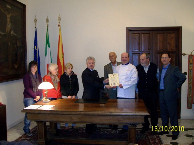 E' stato consegnato l’attestato di conferimento della De.C.O (Denominazione Comunale d’origine) al prestigioso ristorante dei Balzi Rossi che ha voluto inserire nel suo menù questo caratteristico dolce. Grande soddisfazione da parte del Sindaco della Città di Ventimiglia Gaetano Scullino e del Presidente del Circolo della Castagnola Lorenzo Viale di questa attenzione da parte della famiglia Beglia e del suo chef Alfio Gadaldi nel voler far conoscere ai loro clienti questo tipico dolce ventimigliese.