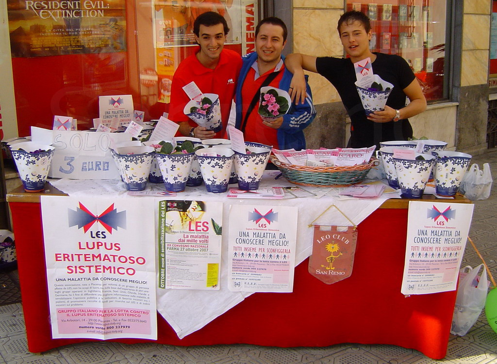Sabato 16 ottobre a partire dalle 10 fino alle 18, i volenterosi ragazzi del Leo Club Sanremo, tornano in piazza, come di consueto, a sostegno del 'Gruppo Italiano LES', allestendo un banchetto presso il cinema Centrale. Verranno offerte alla cittadinanza delle belle piantine di violette, il cui ricavato verrà destinato all'aiuto delle persone malate di Lupus Eritematoso Sistemico, malattia cronica rara di natura autoimmune.