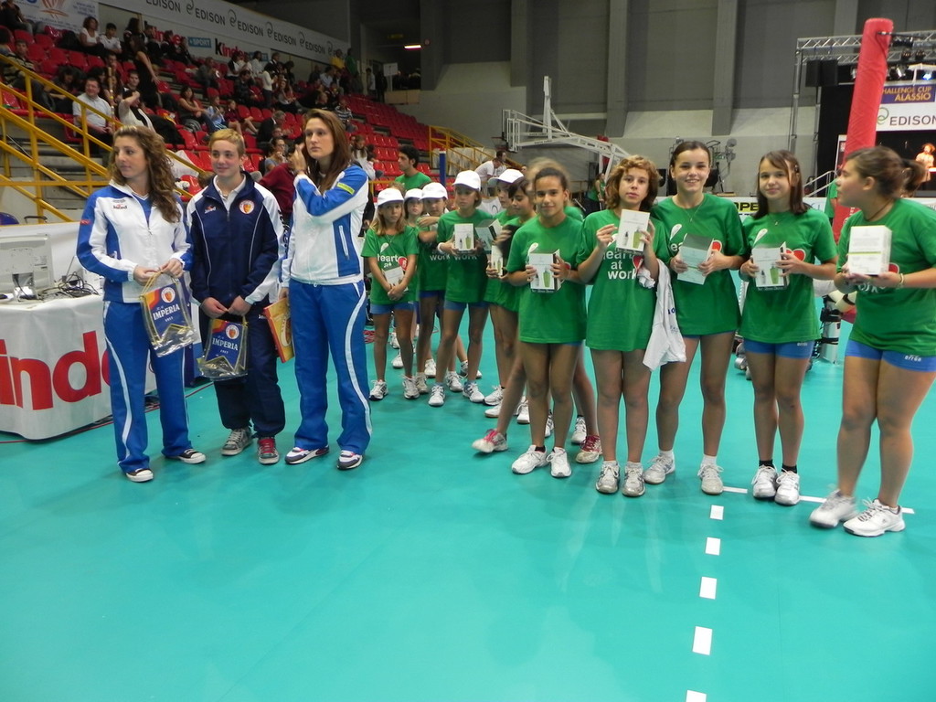 Ieri sera le nazionali della Mediterranea Imperia, Giulia Gorlero, Giulia Emmolo e Francesca Pomeri sono state ospiti dell'Edison Challenge Cup al Palaravizza di Alassio, infatti prima dell’inizio della partita fra l’Italia e la Croazia, le nostre ragazze hanno salutato le colleghe azzurre consegnando loro prodotti della Mediterranea. Il simpatico palcoscenico si è svolto nel bellissimo impianto del Palaravizza di Alassio di fronte ad un pubblico molto numeroso, un bellissimo palcoscenico ricco di stelle dello sport. Le nostre ragazze molto lusingate per la partecipazione all’evento, si sono poi concesse alla moltitudine di giovani atleti che richiedevano gli autografi. La Mediterranea Imperia, per voce del neo dirigente Caterina Raineri, ringrazia gli organizzatori della manifestazione, ricordando che eventi sportivi internazionali come Edison Challenge Cup catalizzano l’attenzione dei media nel ponente ligure e a tale proposito ricorda l’appuntamento della coppa Len che avrà luogo alla Cascione di Imperia dal 10 al 12 dicembre.