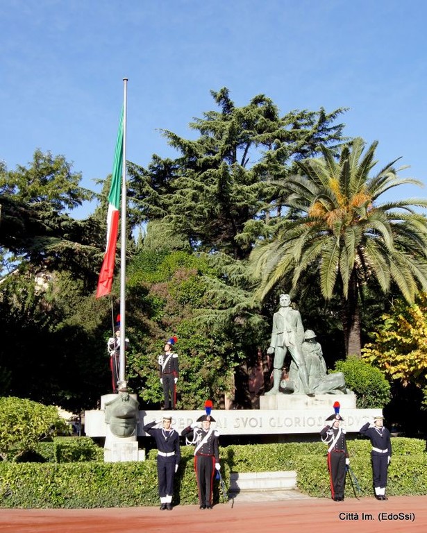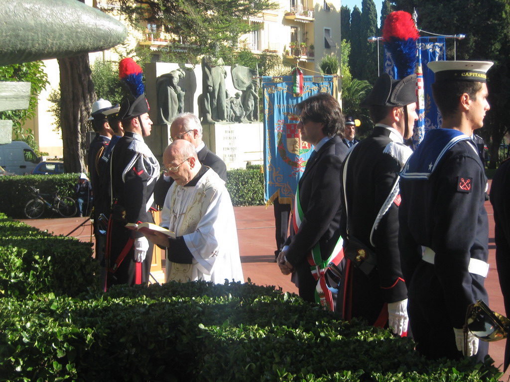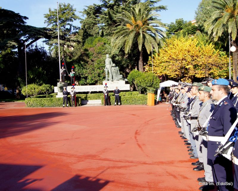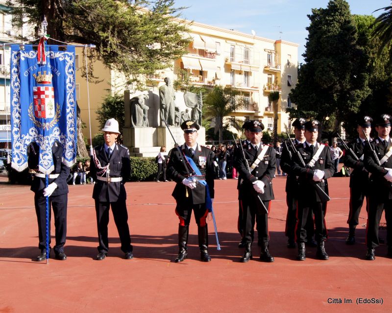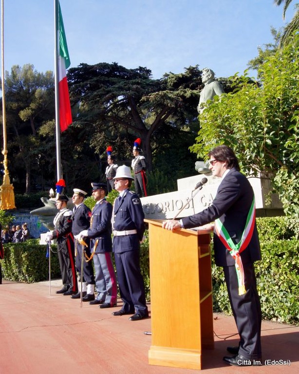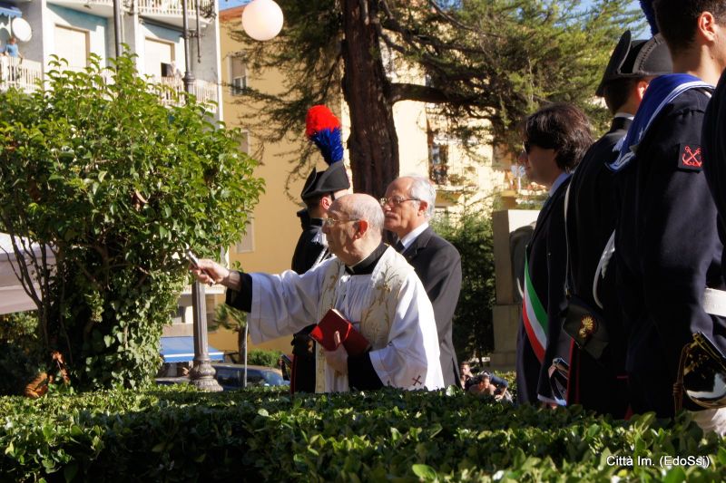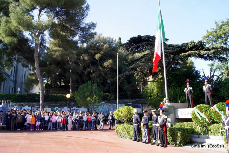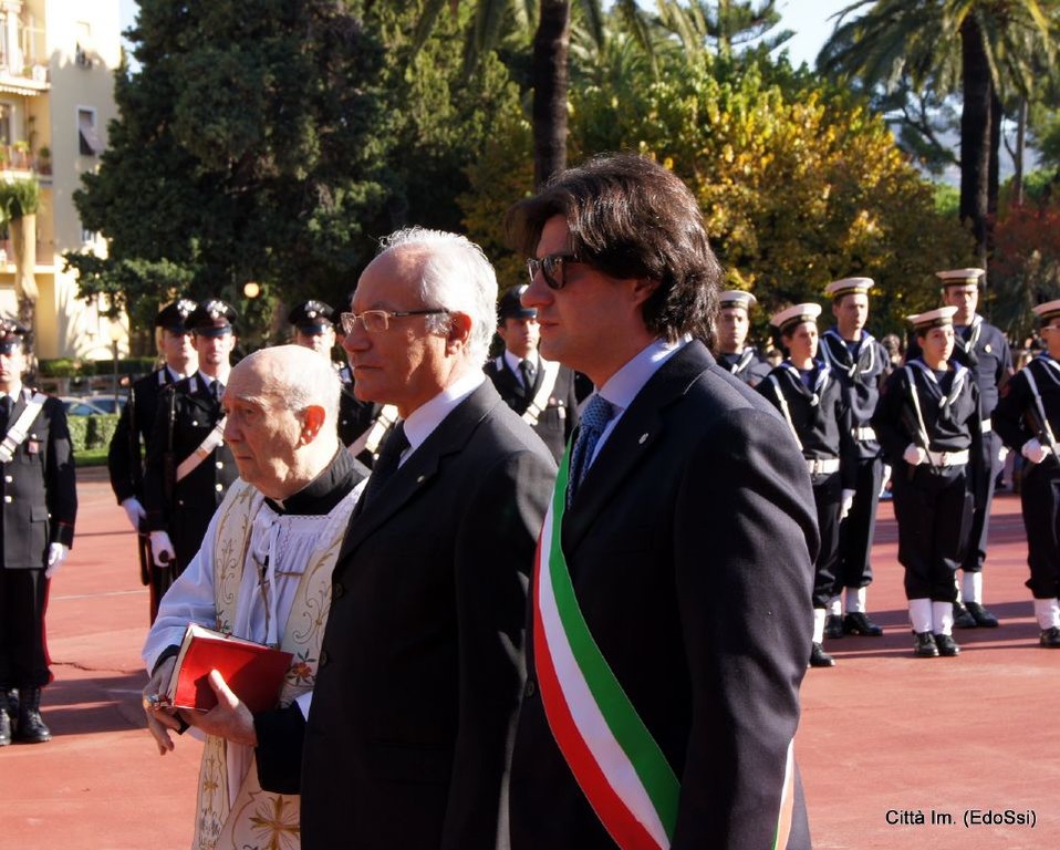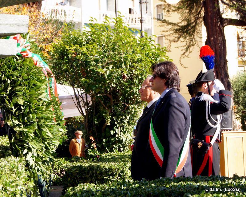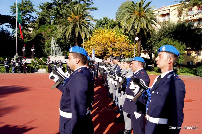 Si è svolta stamattina in piazza della Vittoria alla presenza delle massime autorità militari e civili della Provincia la celebrazione della giornata del 4 novembre festa delle Forze Armate. Prima dell’orazione ufficiale tenuta dal comandante Guido Ferraro presidente del Anmi, ha preso la parola il sindaco di Imperia Paolo Strescino che dopo aver rivolto a tutti i giovani presenti ricordando loro il sacrificio di coloro i quali poco più che adolescenti lasciarono le proprie famiglie per partire per il primo conflitto mondiale mettendo la loro vita al servizio della Patria. Strescino ha anche ricordato che presto la Città di Imperia ricorderà i Ragazzi del ‘99 con l’intitolazione di un largo. Strescino ha anche letto un passo di Jacopo Novaro recentemente celebrato e partito anche lui giovanissimo per il fronte.