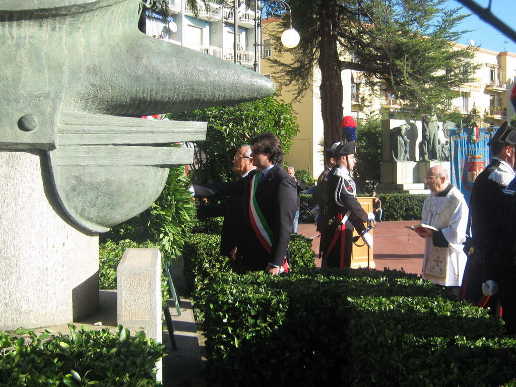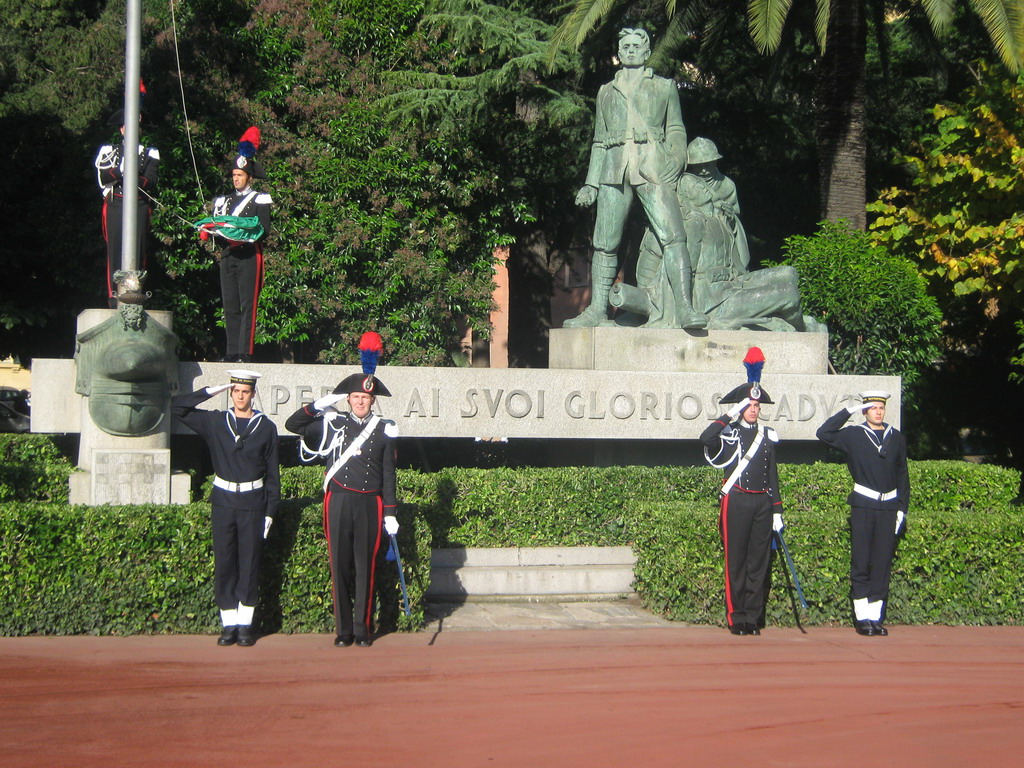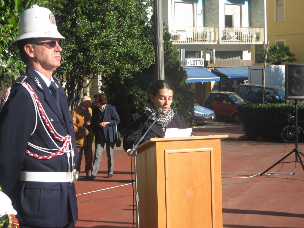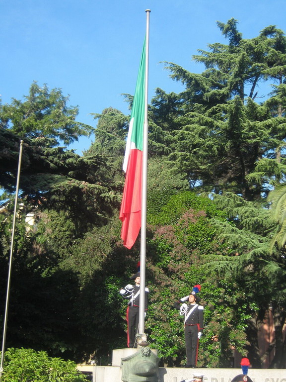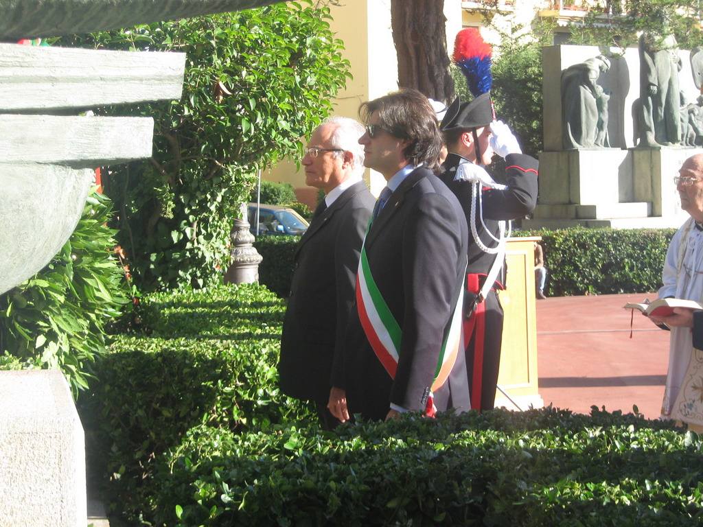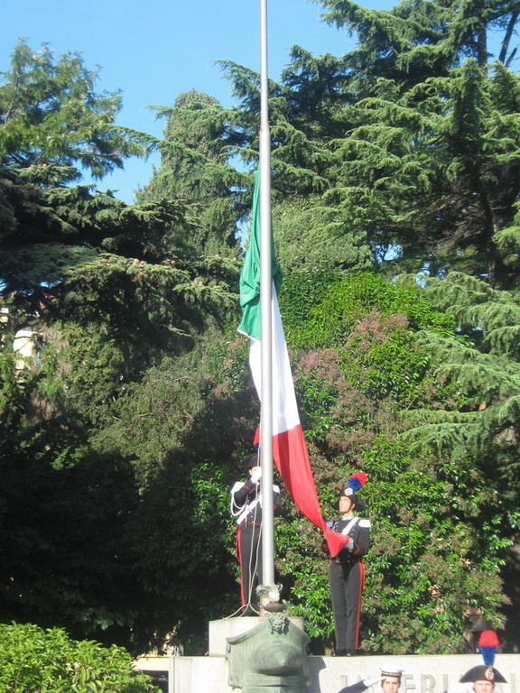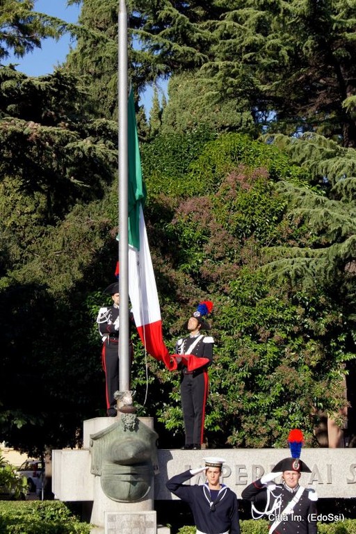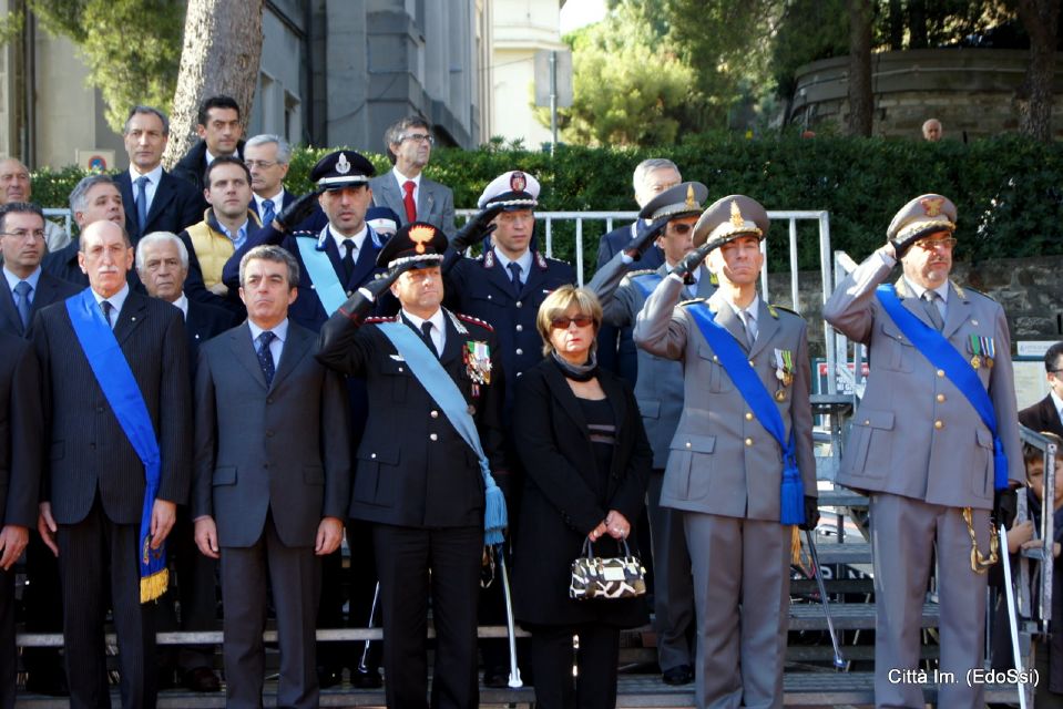 Si è svolta stamattina in piazza della Vittoria alla presenza delle massime autorità militari e civili della Provincia la celebrazione della giornata del 4 novembre festa delle Forze Armate. Prima dell’orazione ufficiale tenuta dal comandante Guido Ferraro presidente del Anmi, ha preso la parola il sindaco di Imperia Paolo Strescino che dopo aver rivolto a tutti i giovani presenti ricordando loro il sacrificio di coloro i quali poco più che adolescenti lasciarono le proprie famiglie per partire per il primo conflitto mondiale mettendo la loro vita al servizio della Patria. Strescino ha anche ricordato che presto la Città di Imperia ricorderà i Ragazzi del ‘99 con l’intitolazione di un largo. Strescino ha anche letto un passo di Jacopo Novaro recentemente celebrato e partito anche lui giovanissimo per il fronte.