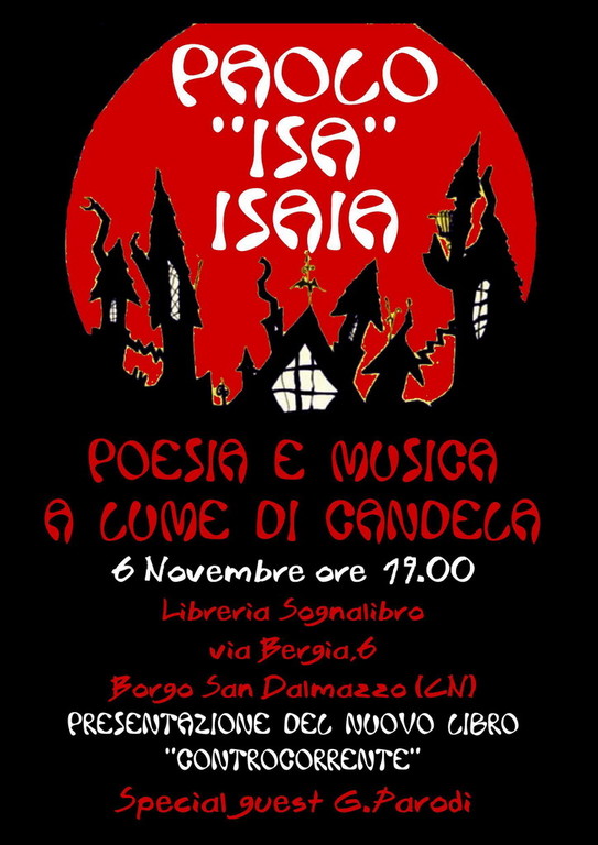 Si svolge domani alle 19, presso la Libreria Sognalibro di Borgo San Dalmazzo in provincia di Cuneo, l'attesa presentazione del nuovo libro di Paolo 'Isa' Isaia 'Controcorrente'. Il poeta sanremese intratterà il pubblico con le sue liriche, accompagnato dalla musica di un altro giovane artista sanremese, Gianmarco Parodi.