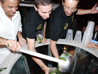 Chili e chili di lime, zucchero di canna bianco, centinaia di litri di rum e soda e tanta, tanta menta (250 litri di rhum bianco della Brugal, 244 litri di soda, 286 chili di ghiaccio, quasi 100 kg di lime, oltre 20 litri di zucchero liquido). Questi gli ingredienti, insieme a musica ed allegria, che hanno regalato ai locali 'Big Ben' e '21' l'alloro del 'Mojito più grande del Mondo', un 'Mojito da 'Guinness'.