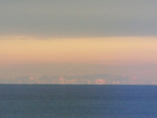 Pubblichiamo una serie di immagini inviateci da un lettore relative ad un fenomeno inconsueto. Si tratta di un effetto ottico che permette di vedere la Corsica dalle coste del Ponente ligure. Questo è possibile grazie ai raggi inclinati del sole che fanno apparire, all’orizzonte, il profilo defilato della Corsica nonostante sia lontana ben 180 km. Un effetto ottico perchè dal livello del mare, la curvatura della crosta terrestre dovrebbe nascondere alla vista la quasi totalità dei profili montuosi ma in giornate particolarmente limpide, come quella odierna, è possibile vedere l'isola francese dalle nostre coste.