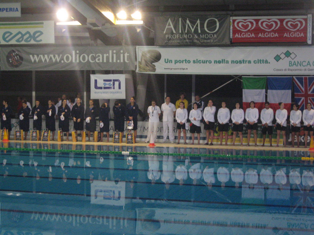 Grande esordio della Linea Mediterranea nel gironcino di Coppa Len in programma alla 'Cascione' da stasera. Le ragazze di Capanna, infatti, hanno superato l'Union Saint -Bruno di Bordeaux apparse nettamente inferiori e in difficoltà, per 21 a 0. Sostenuto dal calore del pubblico il Setterosa giallorosso ha piegato le francesi alle quali le parate di una Giulia Gorlero sueperlativa ha negato anche la gioia della rete della bandiera. In goal per le padrone di casa sono andate la Stieber e la Emmolo 4 volte caiscuna, 3 volte la Pomeri, la Risivi e la Ralat (ferma da un anno e mezzo e utilizzabile solo in Europa) e una volta ciascuno la Russo e la Maggio.