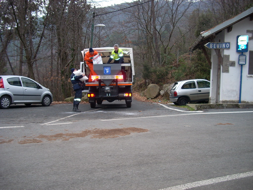 Sanremo: ghiaccio e neve, la protezione civile impegnata nello spargimento del sale