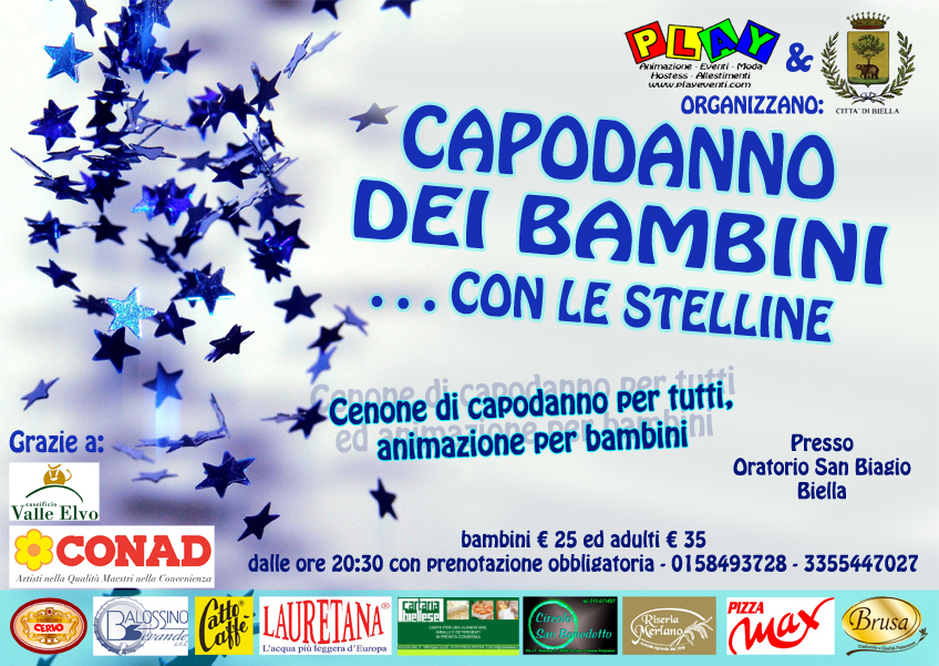 E' stato organizzato per la serata del 31 dicembre il Capodanno dei bambini. Si terrà presso l'oratorio di San Biagio e sarà dedicato ai più piccoli senza dimenticare gli adulti. Una serata sarà allietata da balli, giochi, sorprese e cotillon. Il tutto a misura di bambino.