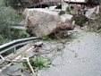 La frana si è verificata stamattina e l'enorme masso ha travolto anche una villetta. Difficile il ripristino.