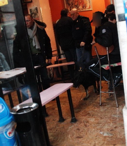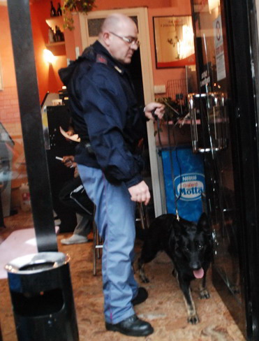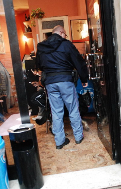 Serie di controlli antidroga della Polizia di Sanremo, oggi pomeriggio, all'interno di un bar di via San Francesco. Alcuni agenti hanno perquisito l'interno dell'esercizio, con l'ausilio del cane antidroga.