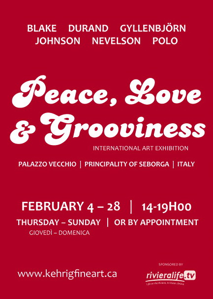 Sabato, dalle 16 alle 24, presso il Palazzo vecchio di Seborga si terrà l’inaugurazione della Mostra artistica 'Peace, Love & Grooviness', curata dalla Kehrig Fine Art. La mostra accoglierà i pezzi di cinque grandi maestri contemporanei (Blake, Durand, Gyllenbjörn, Johnson, Nevelson, and Polo) che hanno riscosso grande successo nelle precedenti edizioni di Londra, New York, Monaco, Santa Fe, Ann Arbor e Toronto. La Kehrig Fine Art, organizzando la mostra nel Principato di Seborga, ha scelto di staccare con le precedenti esperienze metropolitane dando la possibilità di una fruizione delle proprie opere più intima e profonda.